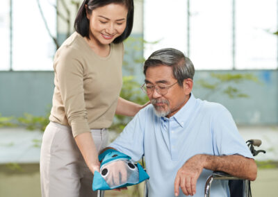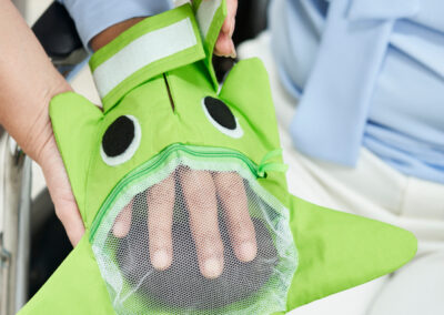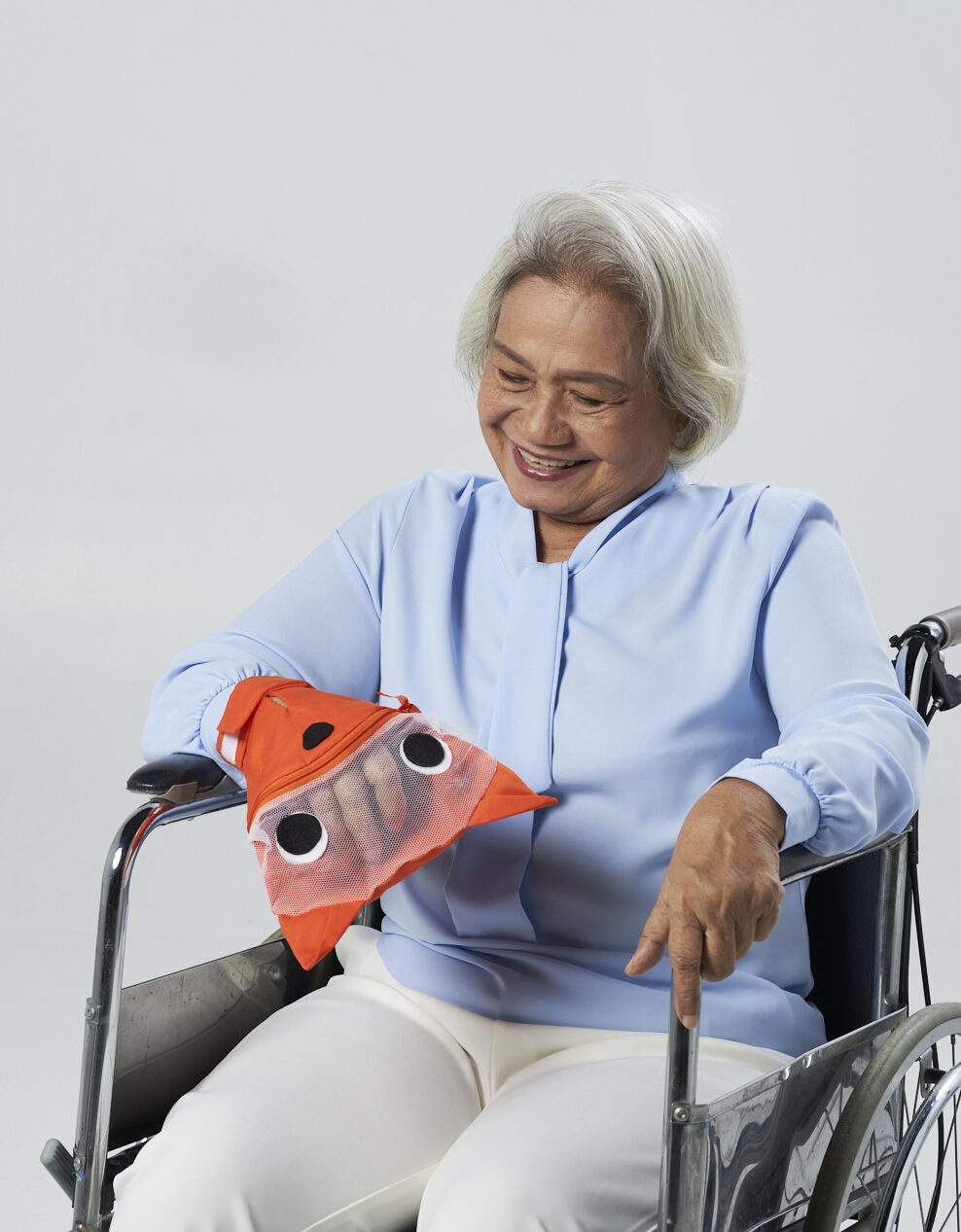 Pulling-prevention Device for Elderly is a care product developed based on the concept of distraction. This innovative glove was designed to divert attention away from implanted medical devices. A rubber ball and rubber pad are inserted inside the glove to stimulate palm sensory and encourage the exercise of finger and hand muscles. This device was designed and developed by Associate Professor Singh Intrachooto, Ph.D. at Kasetsart University with nurses, physical therapists and occupational therapists and product designers.